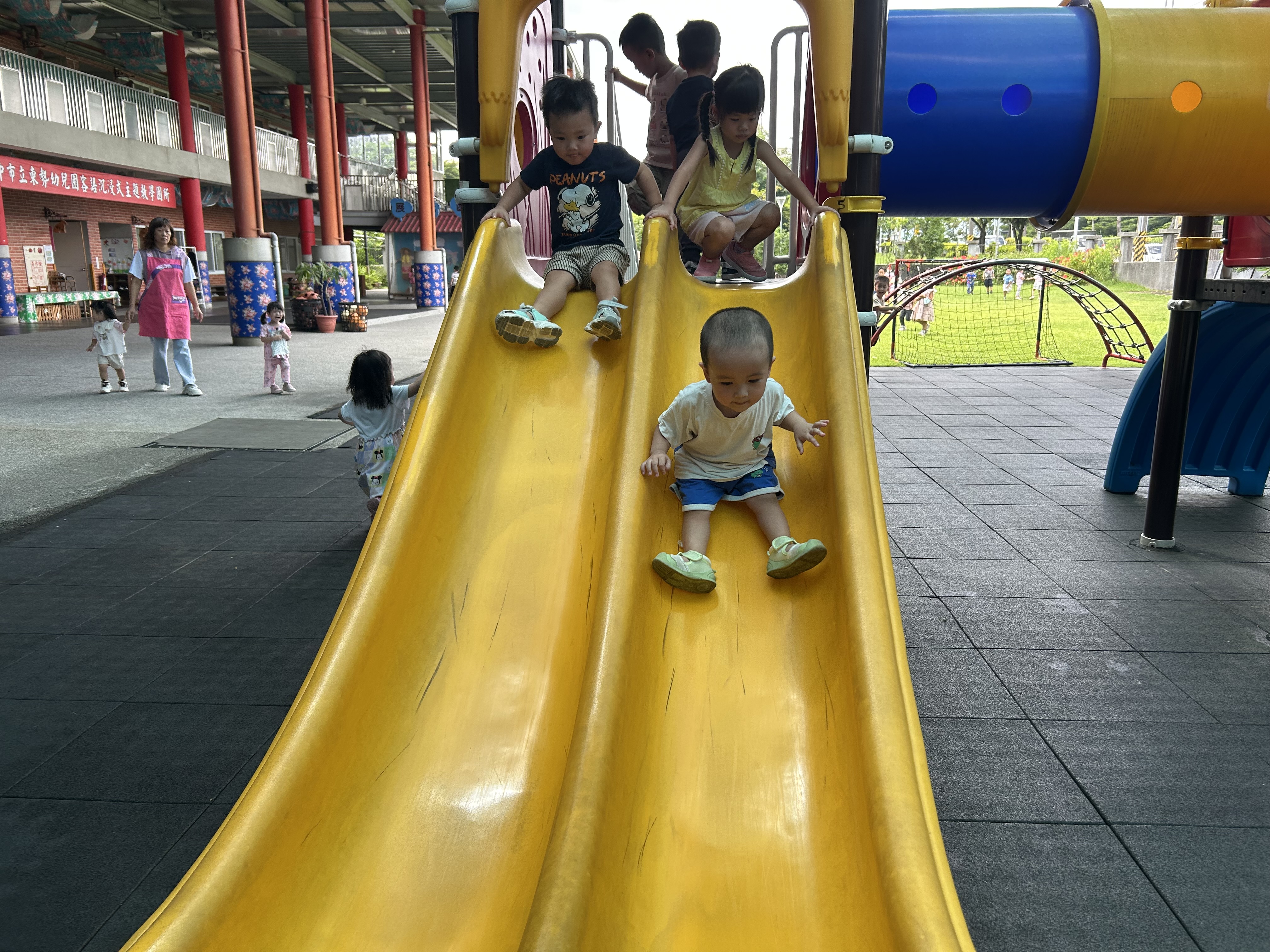 玩遊樂器材要排隊