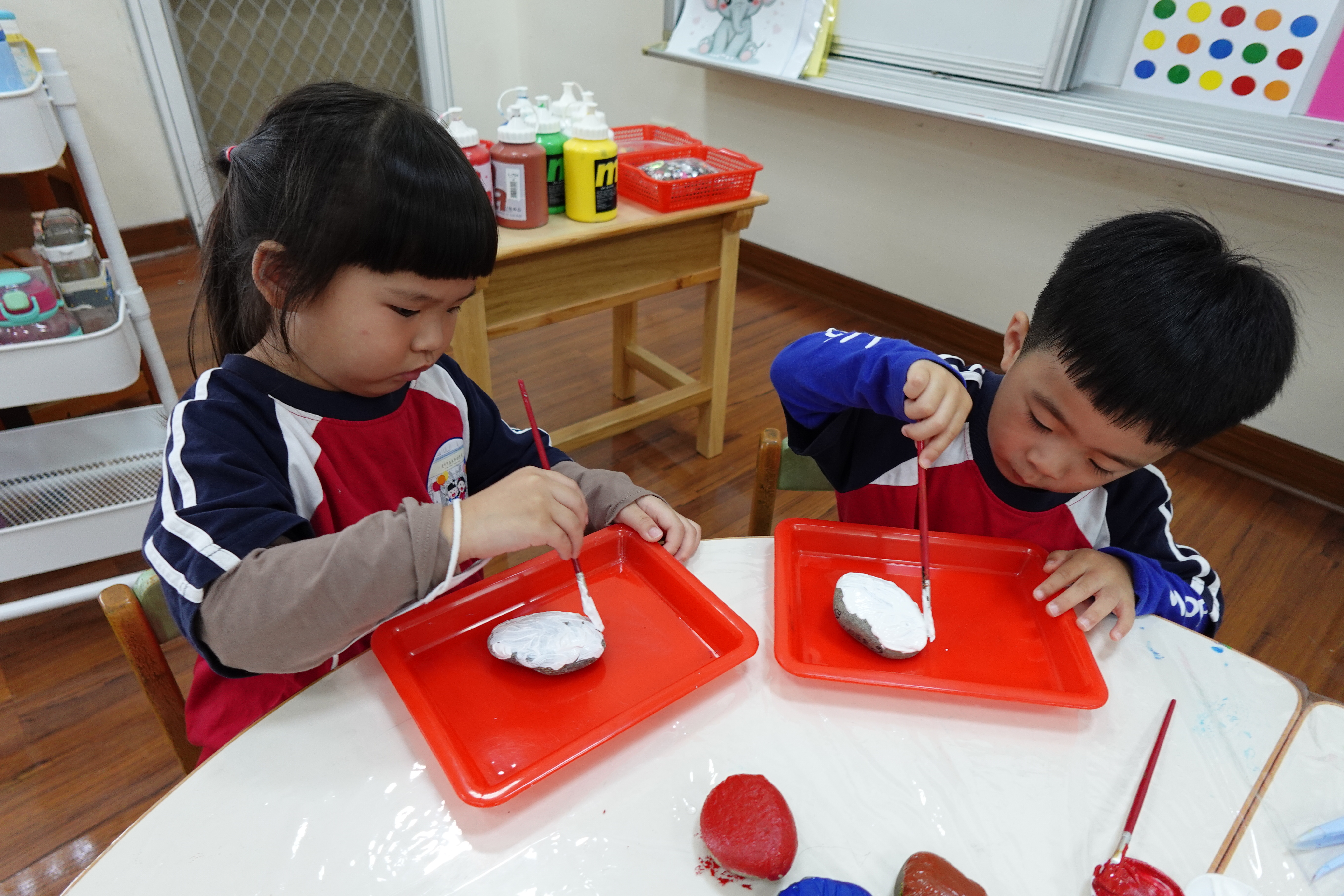 認真彩繪石頭